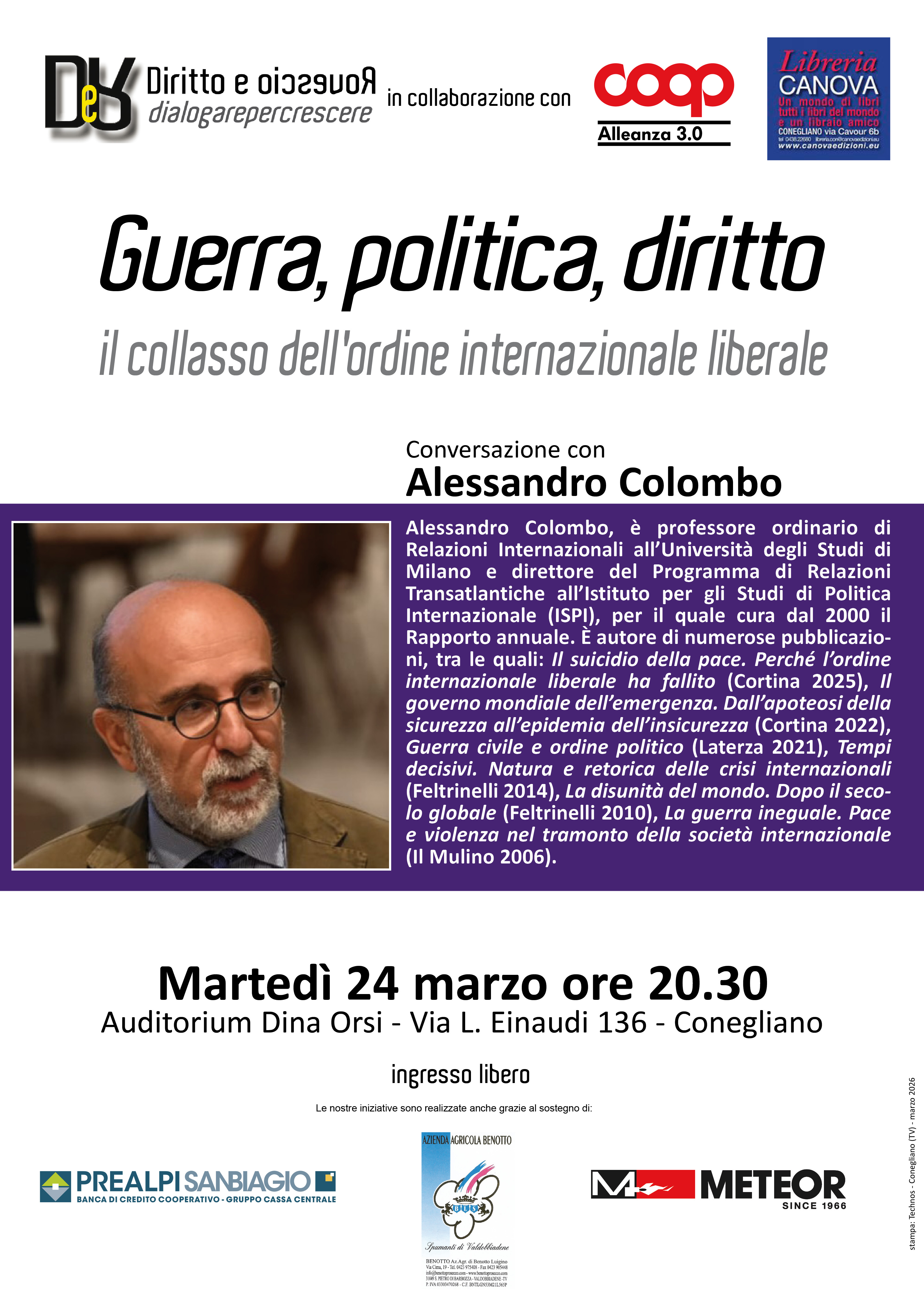Conversazione con Alessandro Colombo | 24 marzo 2026 ore 20:30 Auditorium Dina Orsi